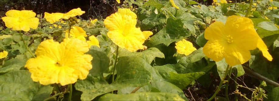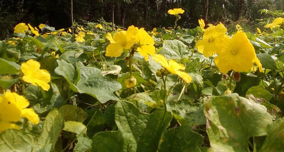 পাইকগাছায় মাচায় মাচায় শোভা পাচ্ছে পল্লার হলুদ ফুল