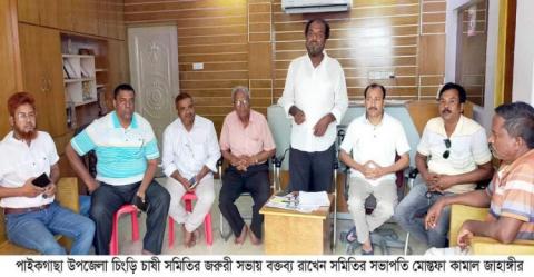 খুলনার পাইকগাছা উপজেলা চিংড়ি চাষী সমিতির জরুরী সভা অনুষ্ঠিত হয়েছে। চিংড়ি চাষের বাঁধা ও প্রতিবন্ধকতা দূর করতে বুধবার সকালে সমিতির পৌর সদরস্থ কার্যালয়ে এ সভা অনুষ্ঠিত হয়। সভায় চিংড়ি চাষীরা বলেন, পাইকগাছা উপজেলা চিংড়ি চাষের জন্য অত্যন্ত সমৃদ্ধ। এখানকার ঘের গুলোতে সারাবছর জুড়ে চিংড়ি, কাঁকড়া সহ বিভিন্ন প্রজাতির মৎস্য উৎপাদন হয়। প্রতিবছর এই উপজেলা থেকে মৎস্য সম্পদ হতে ৫ হাজার কোটি টাকার বেশি আয় হয়। বাগদা চিংড়ি চাষের জন্য হাজার হাজার মানুষের কর্মসংস্থান হয়েছে। এখানকার জীবনমানের উন্নয়ন হয়েছে। সভায় বাগদা চিংড়ি চাষ যাতে আগামীতে অব্যাহত থাকাসহ চিংড়ি চাষ বন্ধের যে কোন ধরণের বাঁধা ও প্রতিবন্ধকতা দূর করতে চিংড়ি চাষীরা ঐক্যবদ্ধ থাকার পাশাপাশি বিভিন্ন কর্মসূচী পালন করার সিদ্ধান্ত নেওয়া হয়। চিংড়ি চাষী সমিতির সভাপতি মোস্তফা কামাল জাহাঙ্গীরের সভাপতিত্বে অনুষ্ঠিত সভায় বক্তব্য রাখেন, সাধারণ সম্পাদক গোলাম কিবরিয়া রিপন, চিংড়ি চাষী নির্মল মজুমদার, মনোহর সানা, আনোয়ারুল ইসলাম, এ্যাডঃ মোর্তজা জামান আলমগীর রুলু, জিএম ইকরামুল ইসলাম, প্রভাষক আবু সাবাহ, সুনীল মন্ডল, আলহাজ্ব সাজ্জাত আলী সরদার, আলহাজ্ব মাহবুবুর রহমান, শওকত আলী মোড়ল, রেজাউল করিম, মোস্তফা গাজী, শামীম হোসেন, সায়েদ আলী মোড়ল কালাই, আজুবর মোল্লা, জাহাঙ্গীর আলম, নূরুজ্জামান, মুজিবর রহমান ও বাবু দফাদার। এছাড়া উপস্থিত ছিলেন সমিতির অন্যান্য সদস্যবৃন্দ।